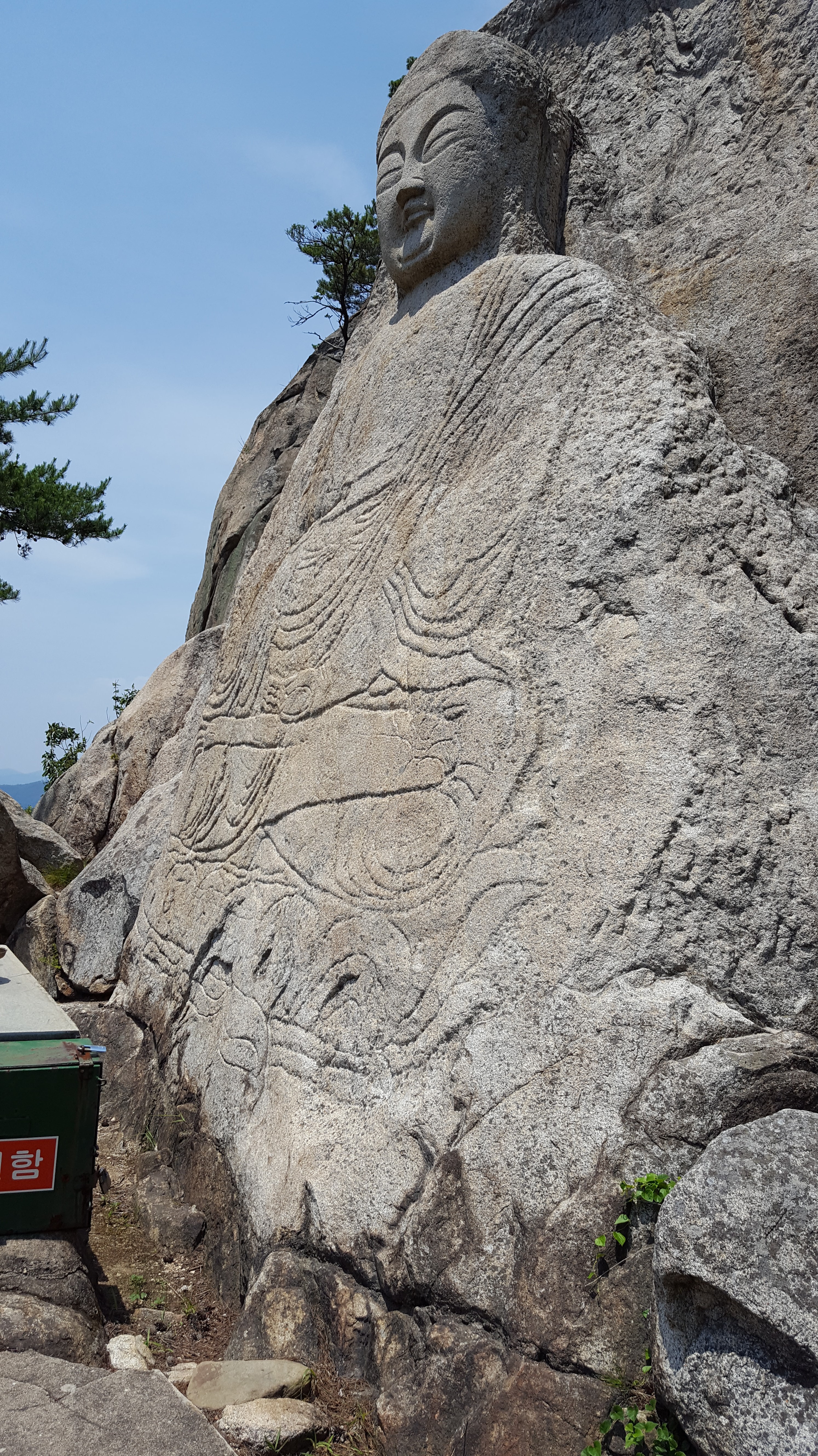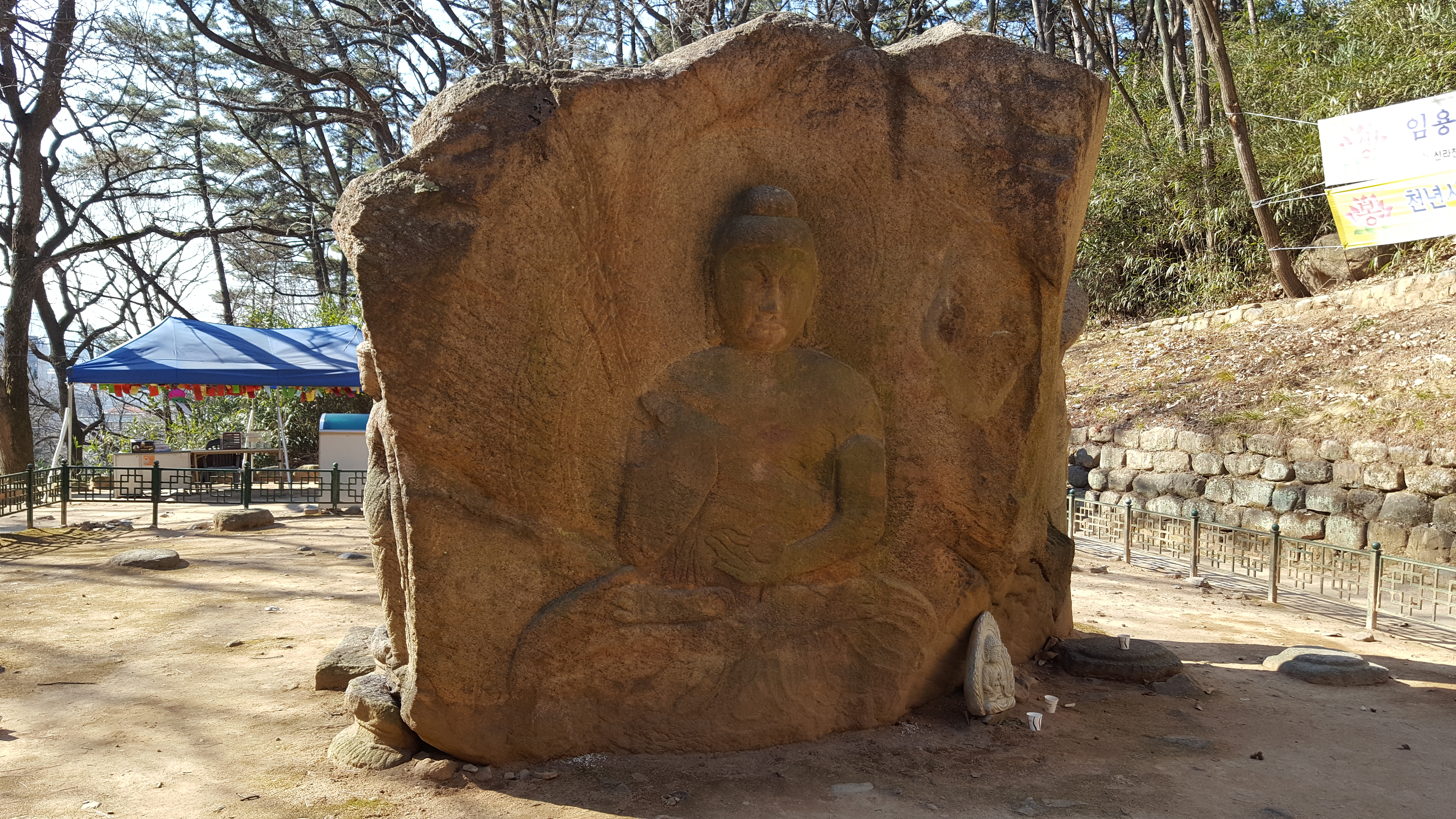 경주 남산 삼릉계곡 상단부에 위치한 바위에 새겨진 석가여래좌상으로 남산 금오봉을 바라보고 있다.