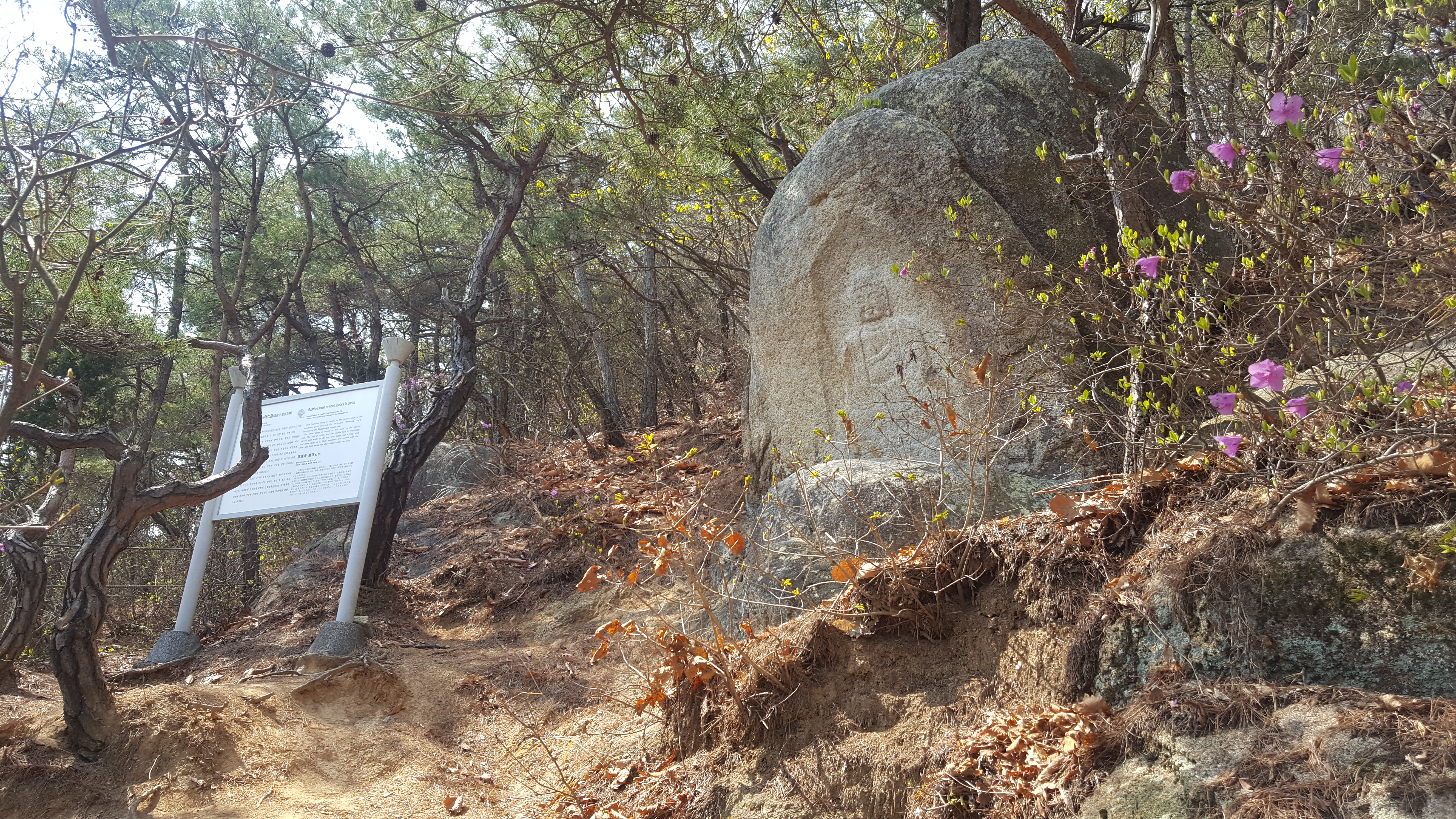 이 불상은 남산 금오봉 8부 능선까지 올라야 볼수 있는 보물급 마애불상이다.