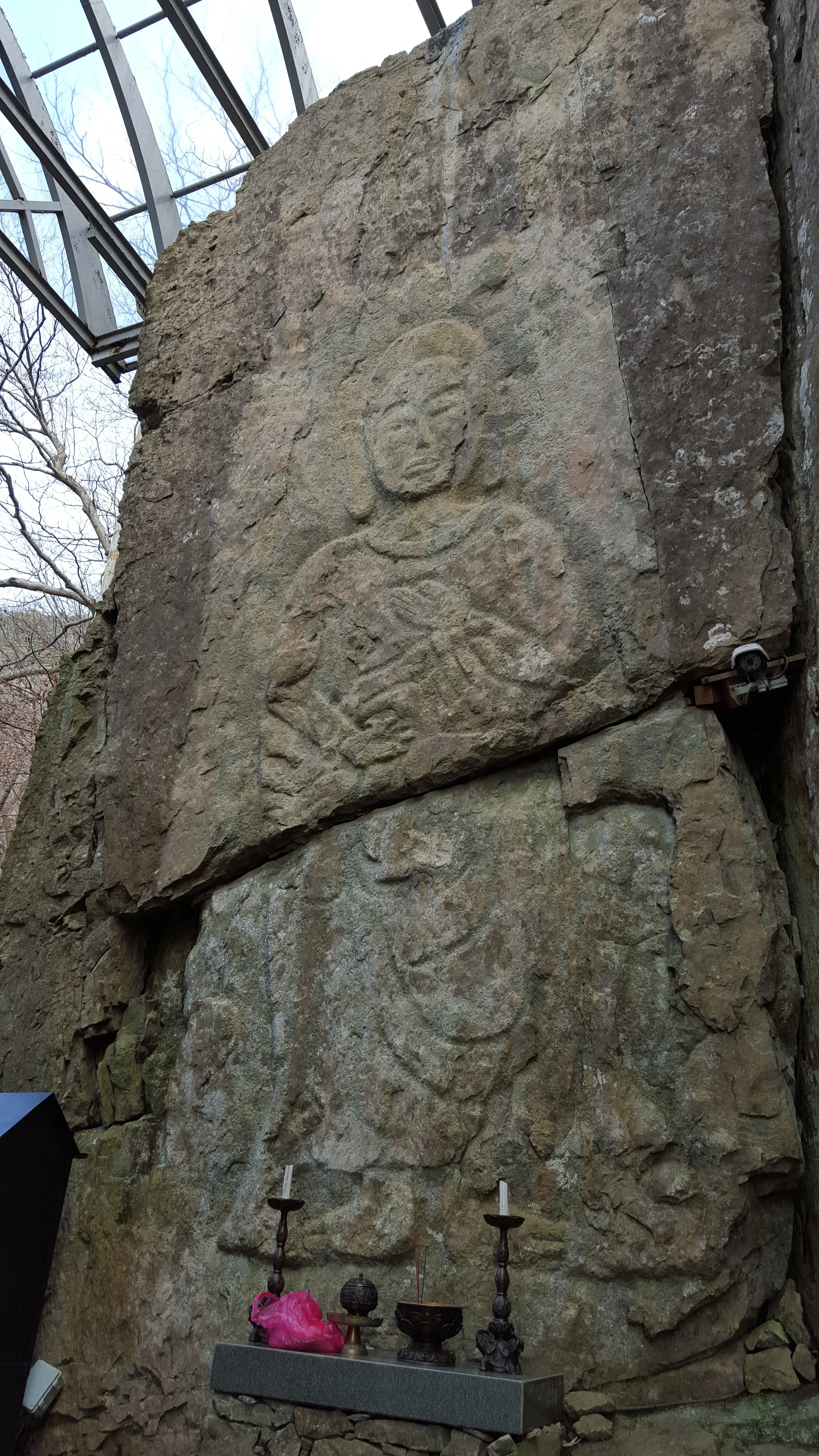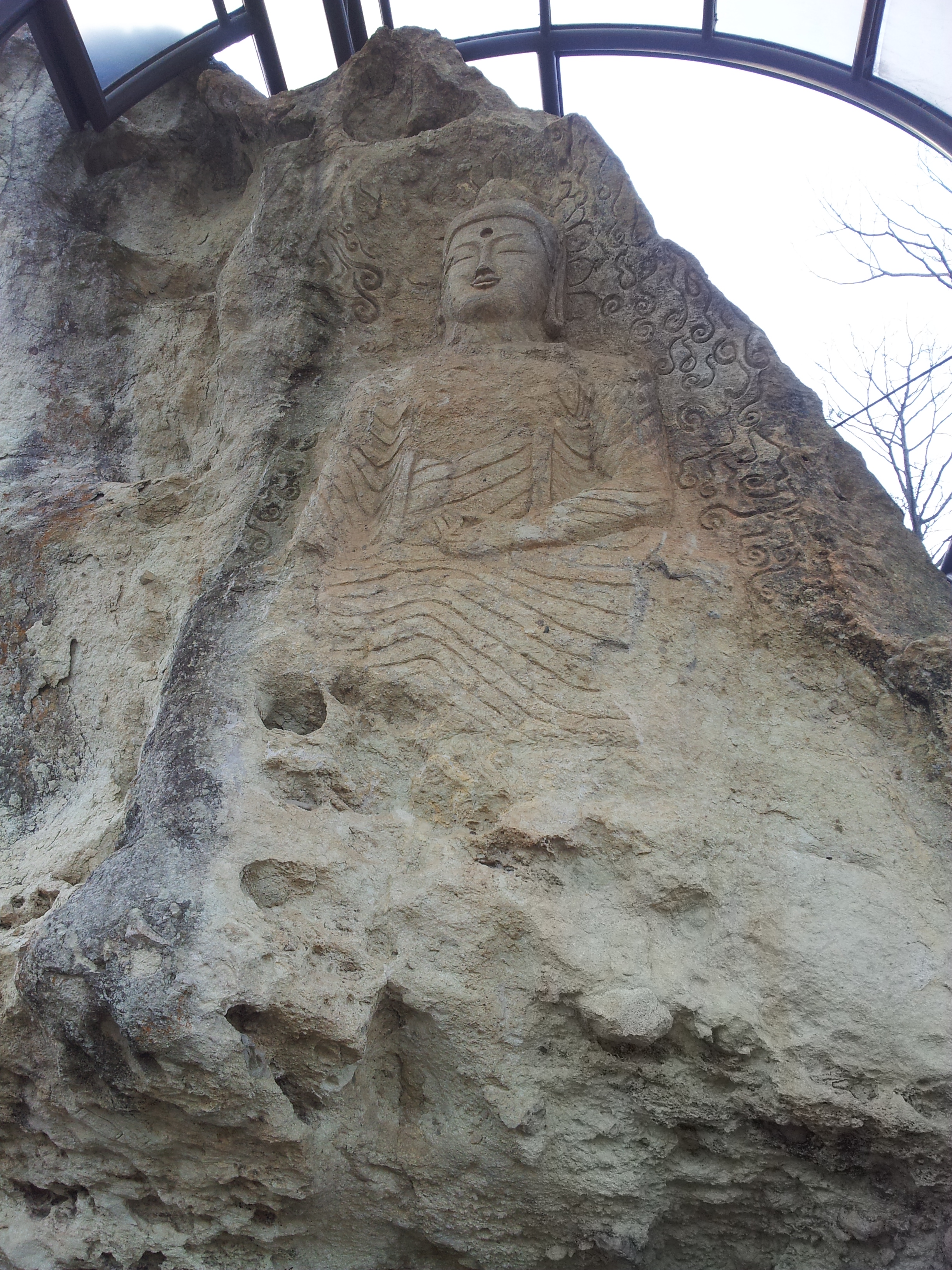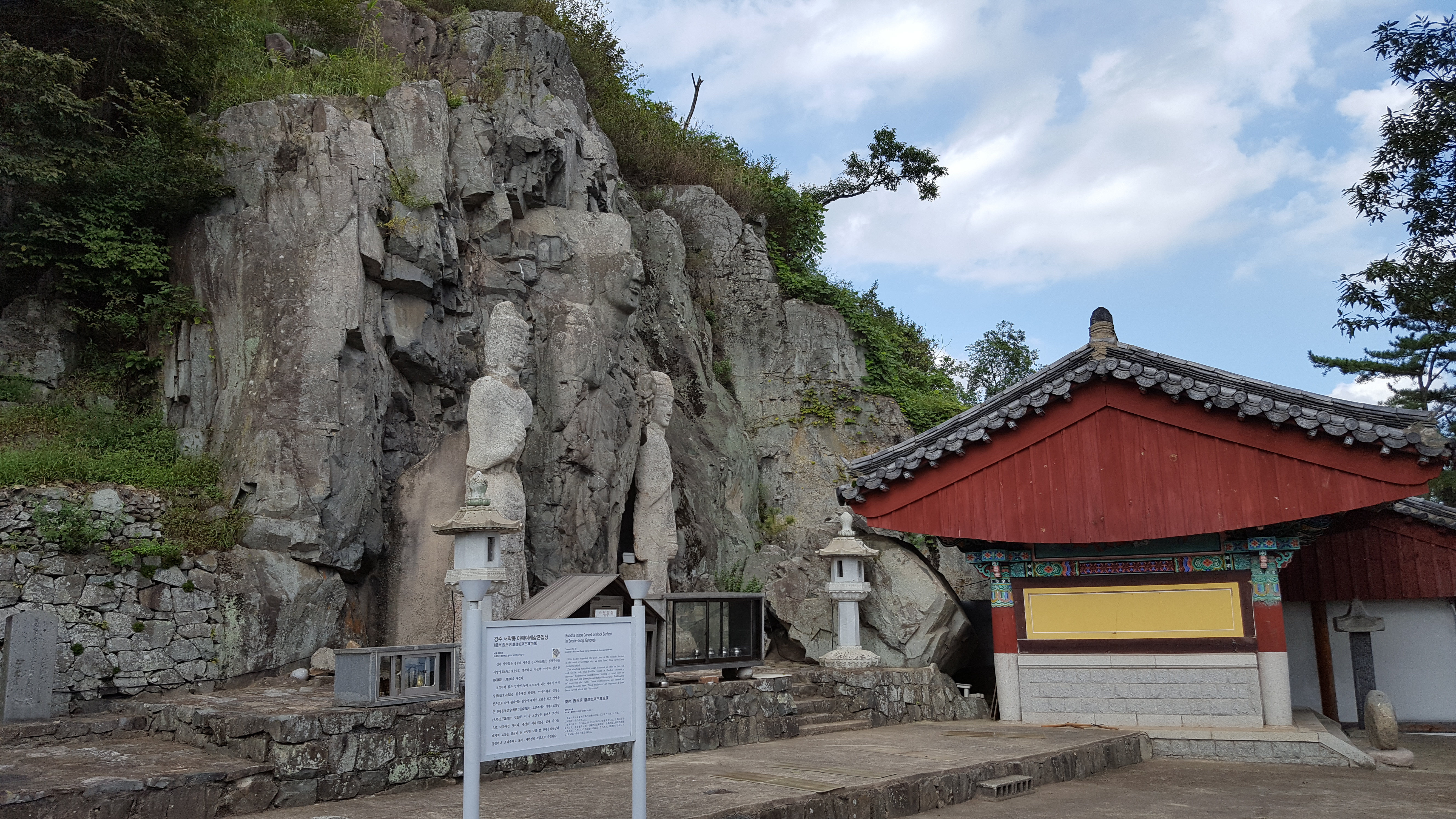 이곳 골굴사 마애여래좌상(보물 581호)은 동쪽을 향한 바위면에 새겨진 불상으로 화염문의 광배를 하고 있으며 동해바다를 바라보며 그윽한 미소를 품고 있다.