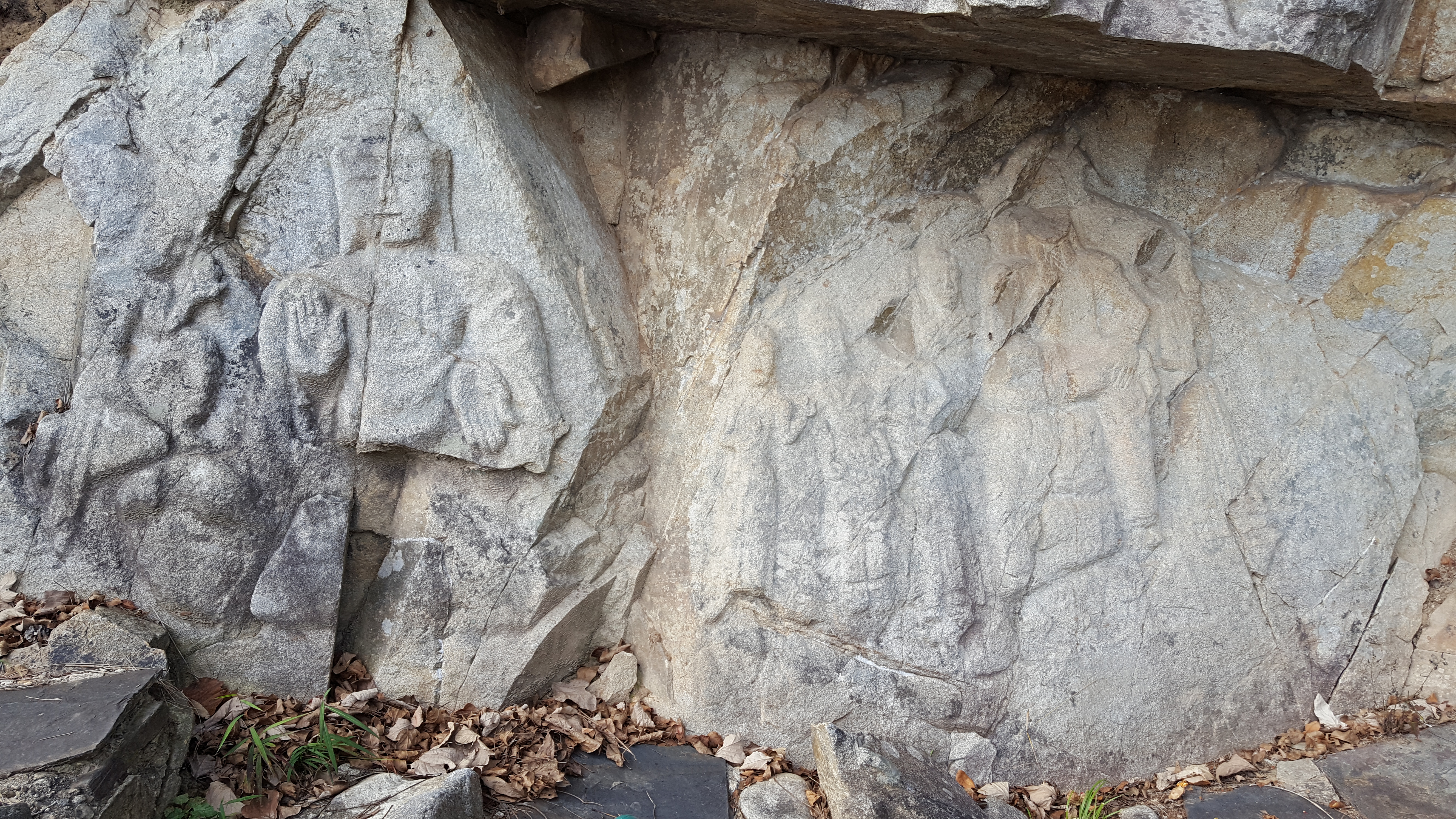 나는 우리나라 마애불 중 불상이 아닌 부부 공양상은 이것이 유일하고 왼쪽 석물의 모자가 원정모인지라 석물 기록에 점수를 후하게 주어서 조선시대의 것으로 판단한다. 그리고 나는 이 석물을 마애불이 아닌 마애공양상으로 본다.
