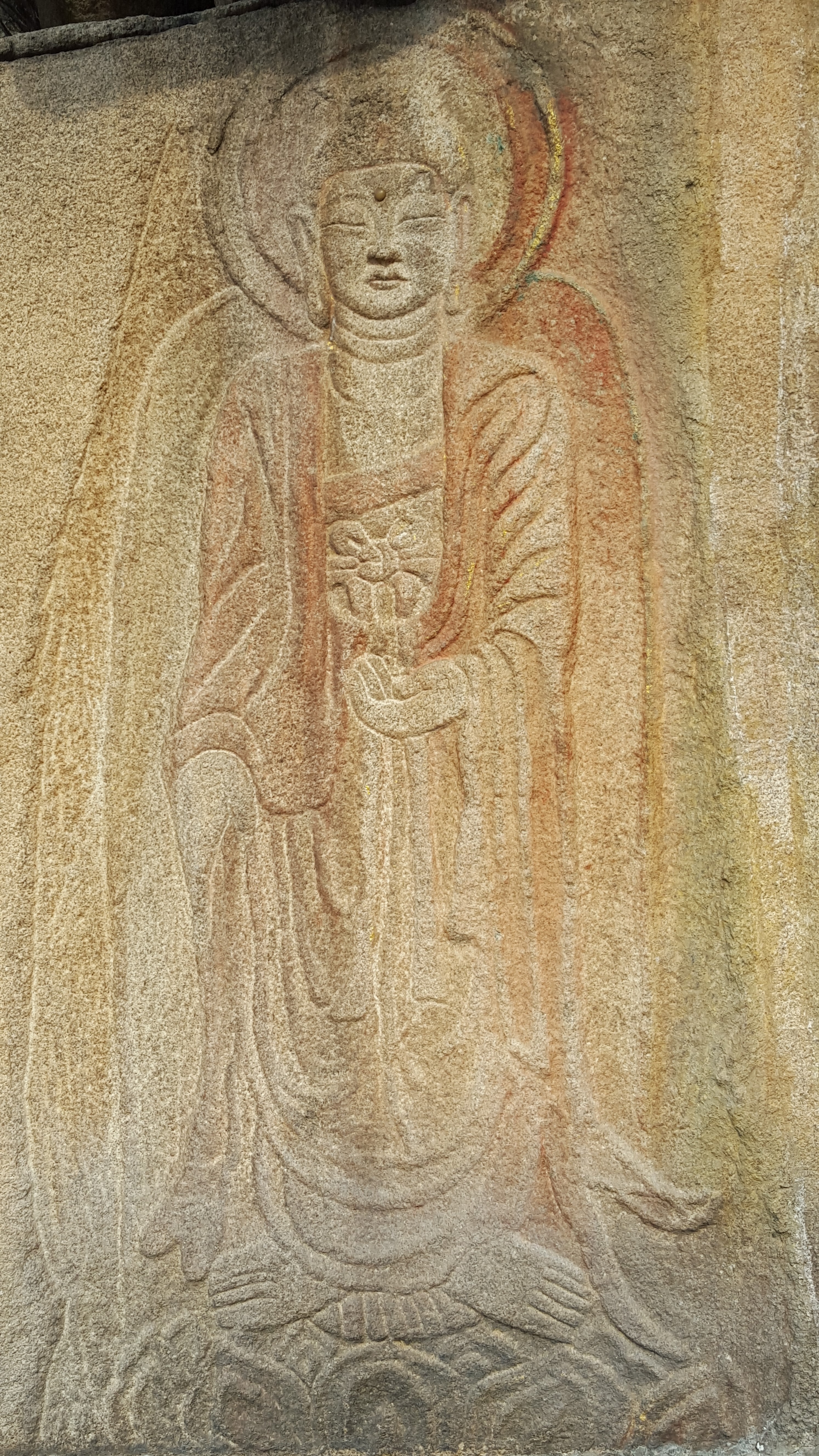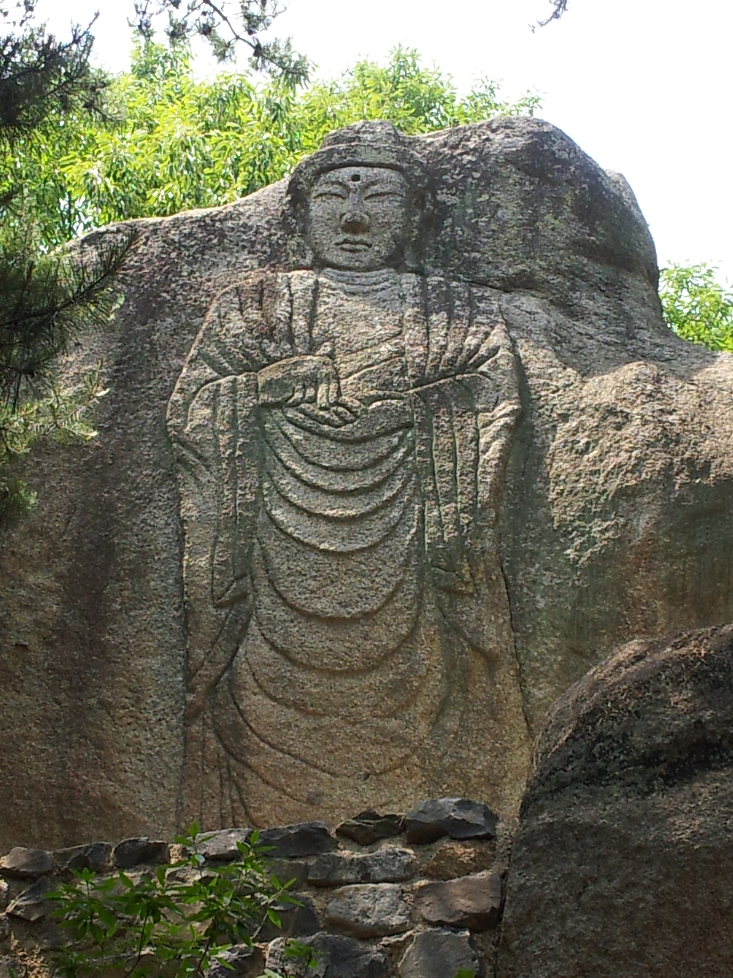 통견의 옷주름이 뚜렷하게 새겨진 고려시대의 마애불이다.
