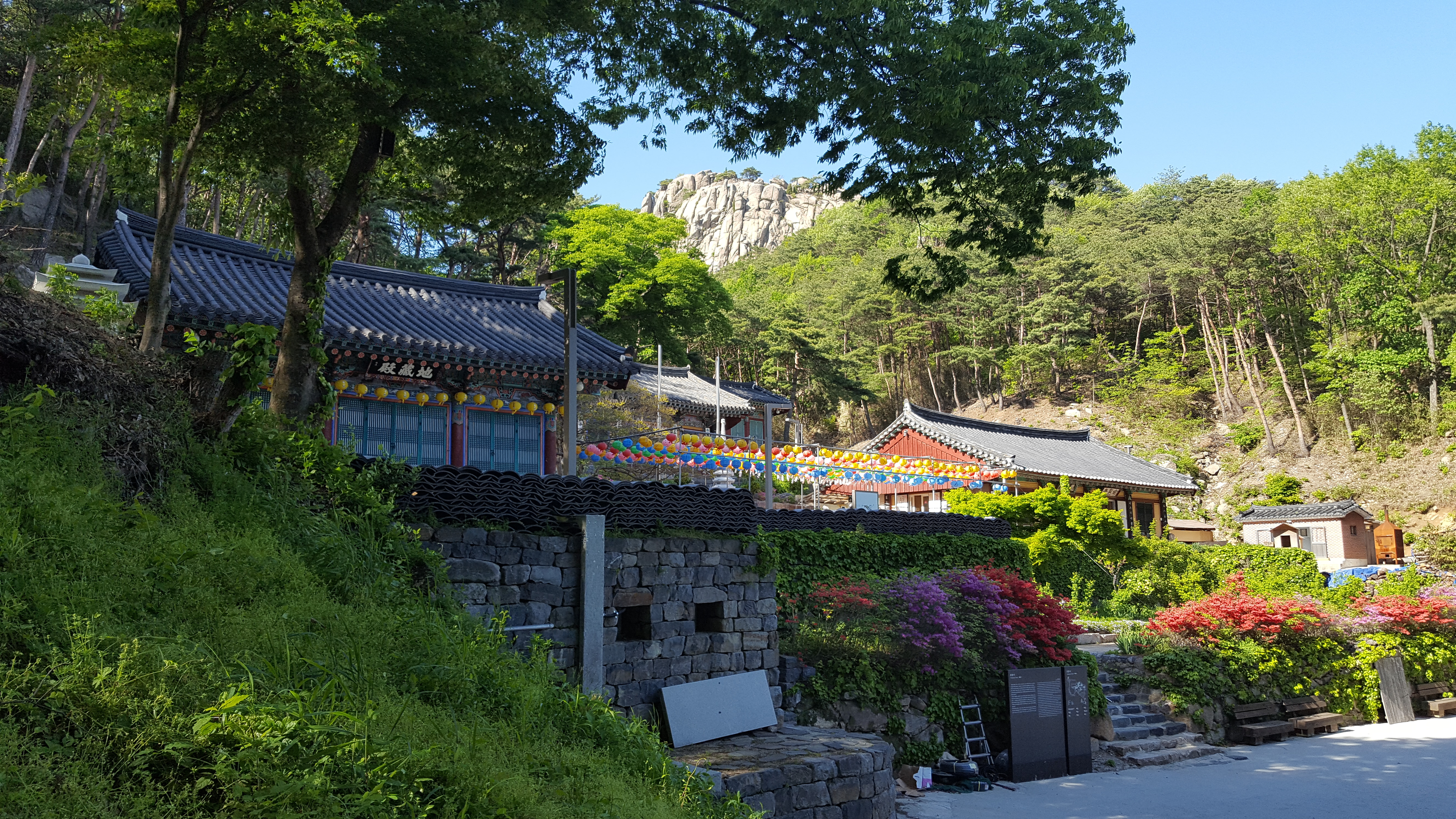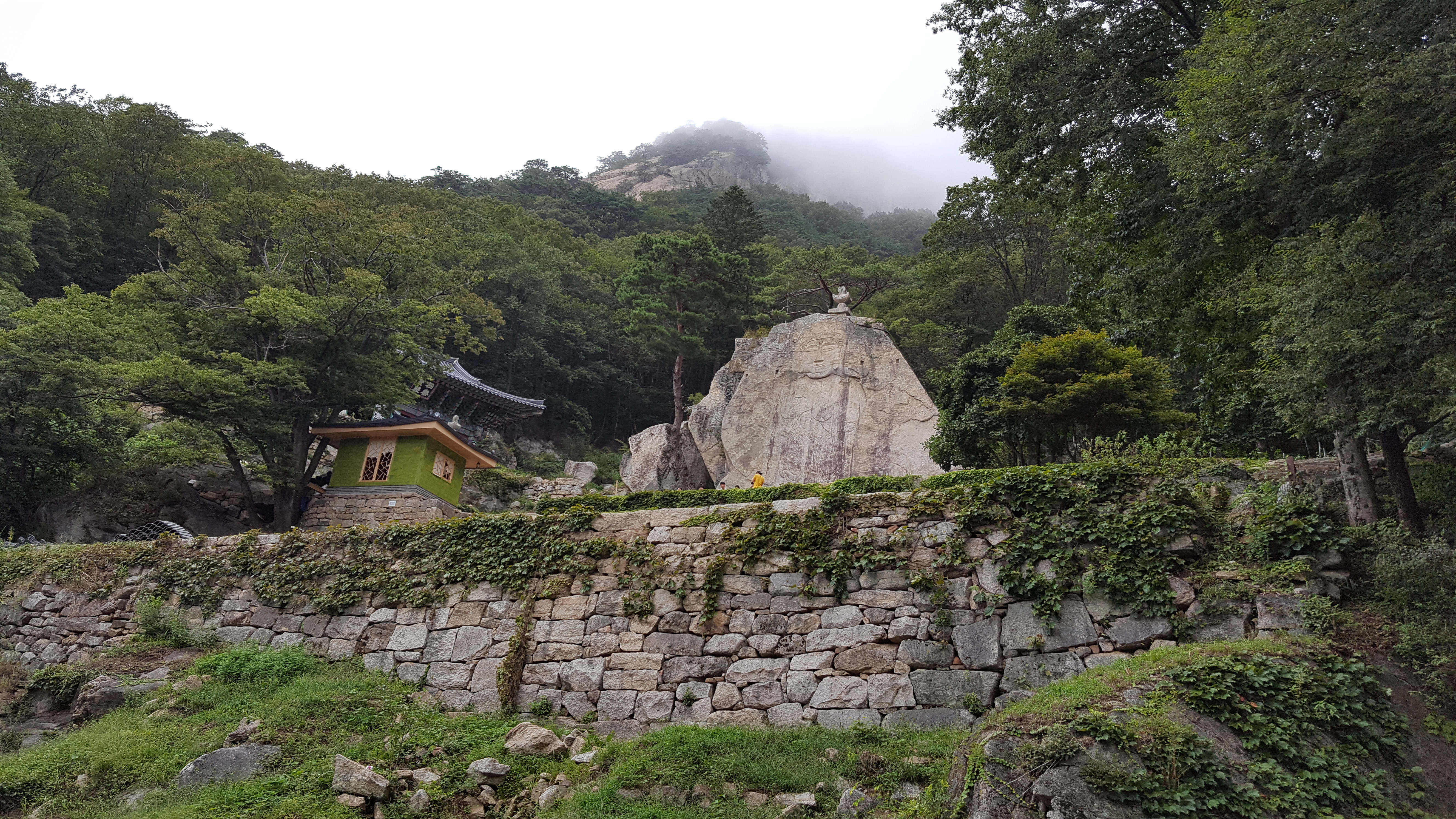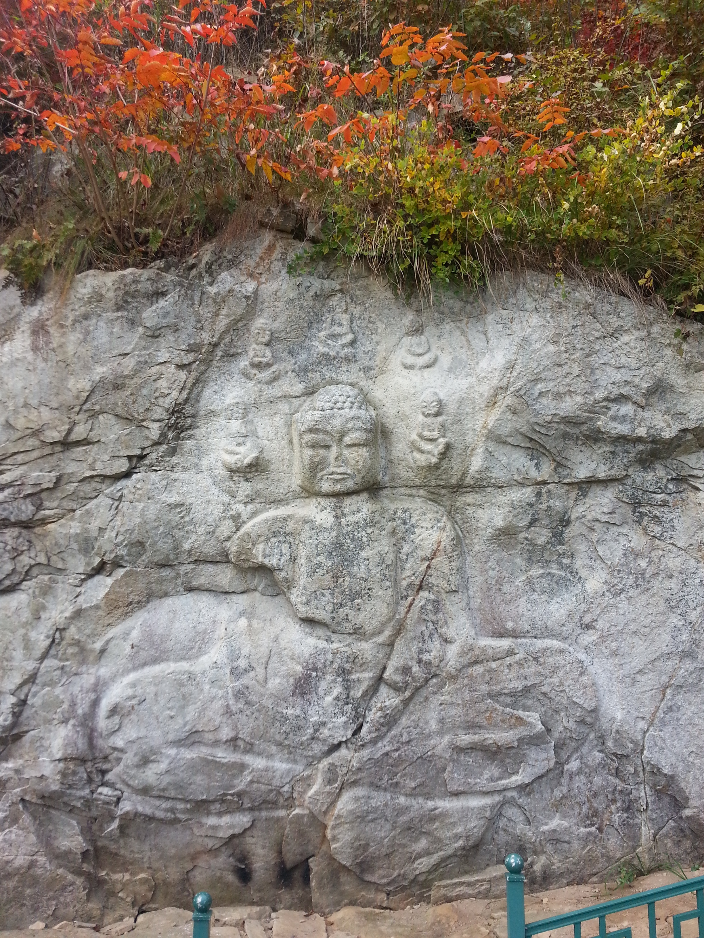 절 뒤로 난 계단을 한참 더 올라가면 북한산 화강암의 특징인 하얀색의 멋진 화강암 바위에 새겨 넣은 더 멋진 큰 마애여래좌상(보물 215호)을 만날 수 있다.