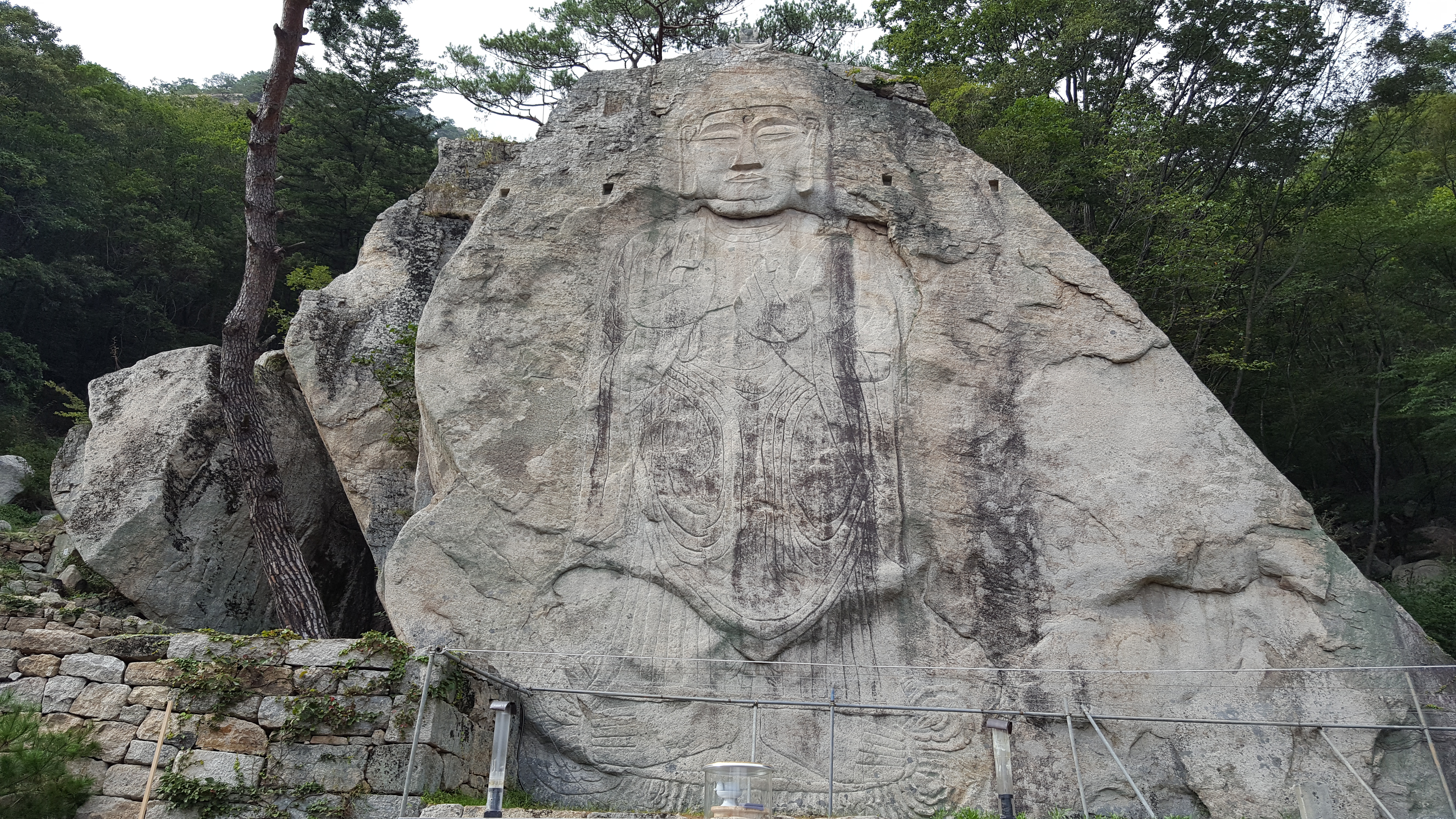 백두대간의 명산 속리산 법주사 경내에 있는 약 5m 크기의 마애여래의상(보물 216호)으로 고려시대 작품이다.