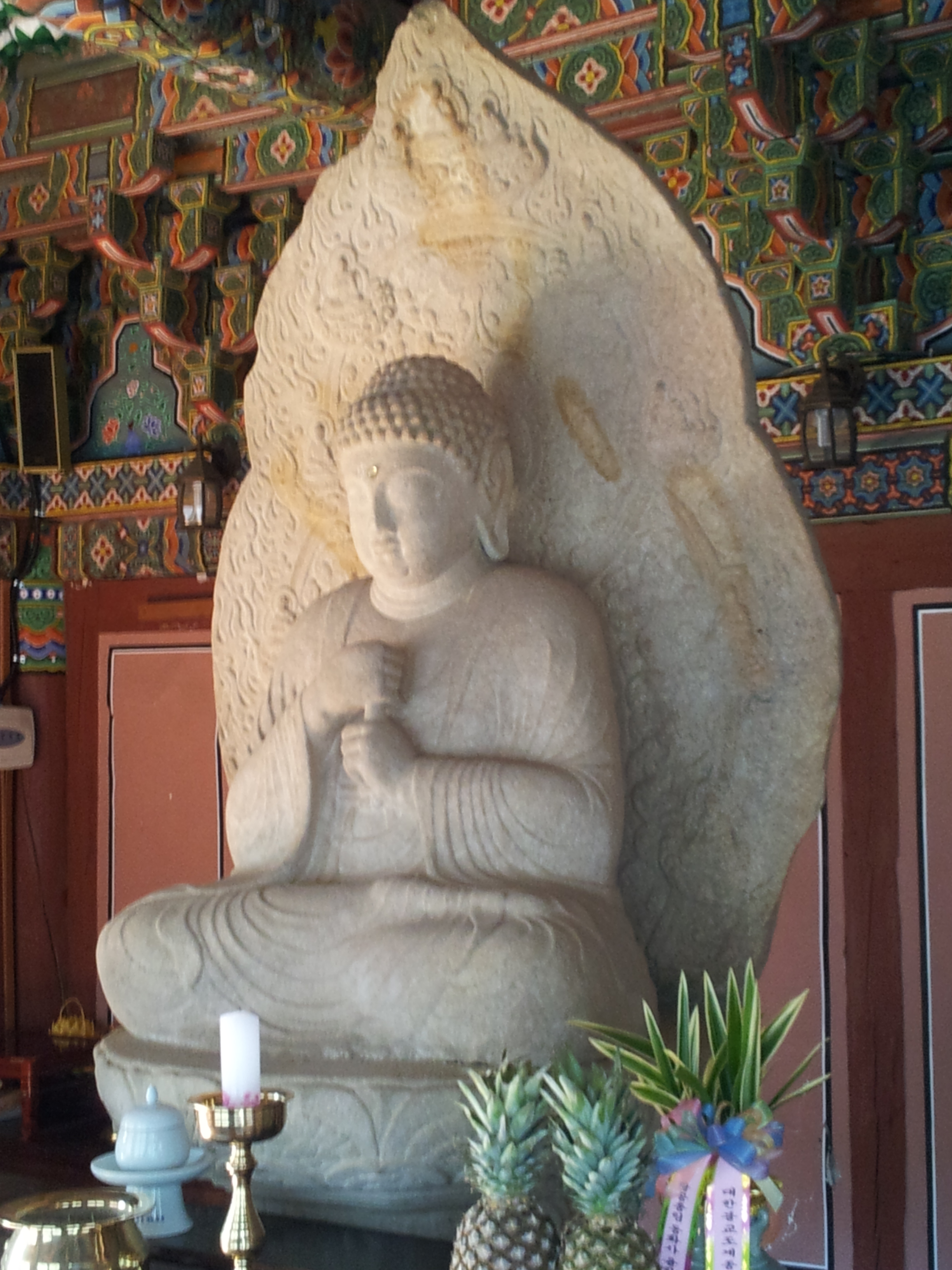 통견에 항마촉지인 수인을 하고 있으며 두광과 신광에 화불이 조성되어 있는데 이 또한 조각이 잘되어 있다.