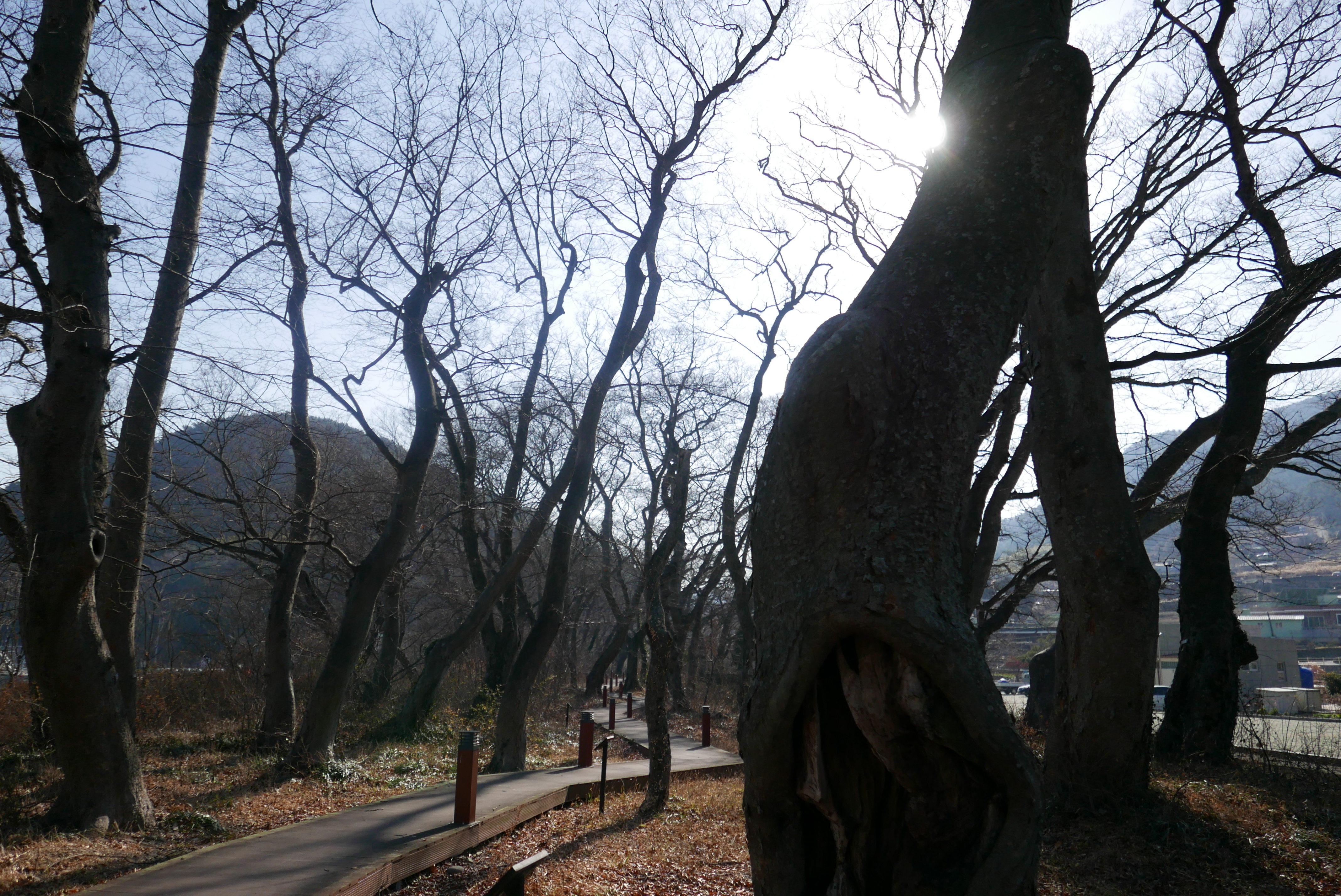 해안가 방풍림들이 주로 해송인 곰솔이 많은데 반해, 이곳의 나무들은 팽나무. 푸조나무. 이팝나무. 후박나무. 상수리나무. 느티나무 등의 활엽수가 주를 이룬다.
