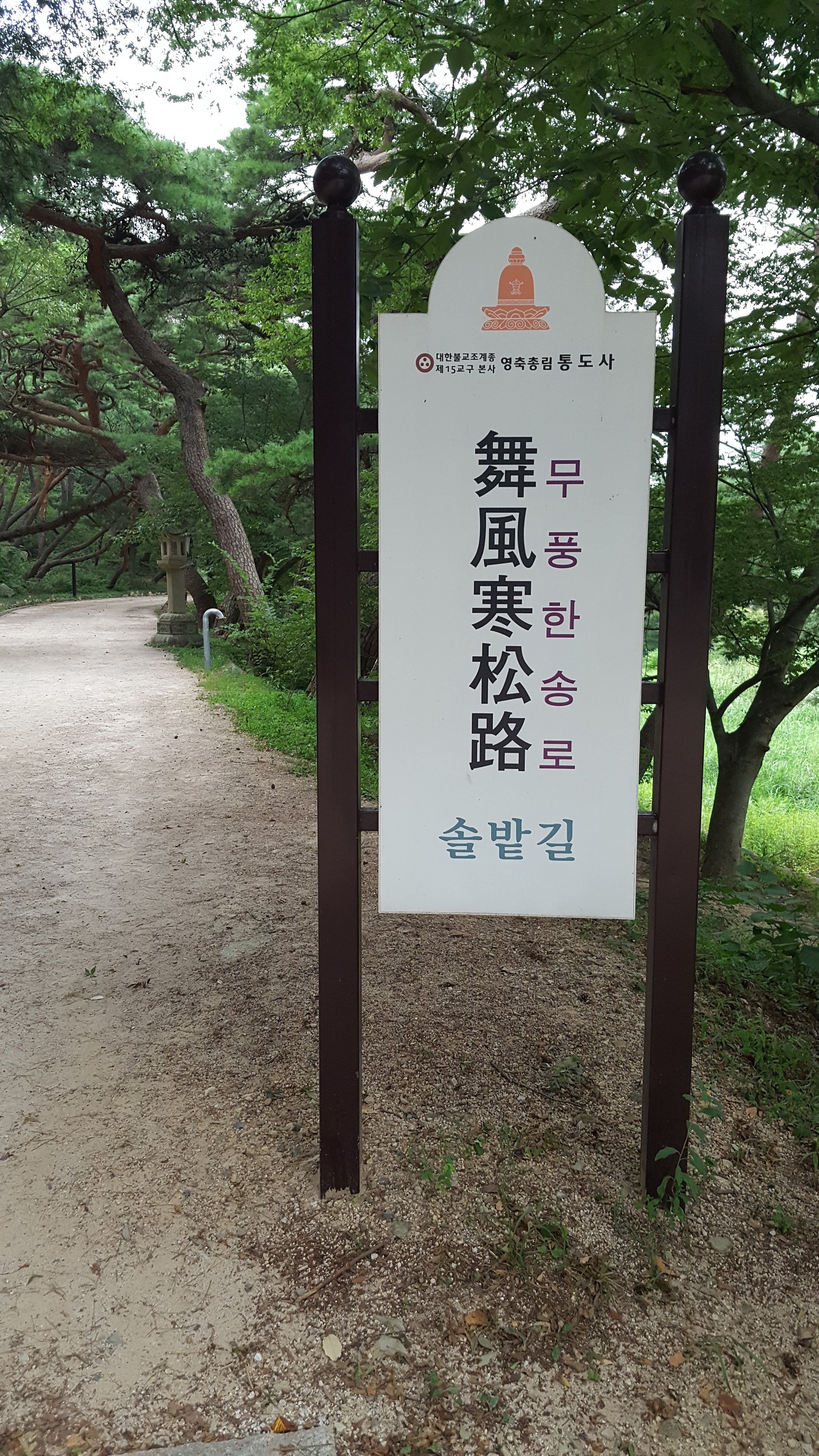 통도사 입구 매표소에서 통도사 일주문까지 계곡을 따라 이어지는 숲길 이름이 '무풍한송로'이다. 참 어려운 이름이다.
