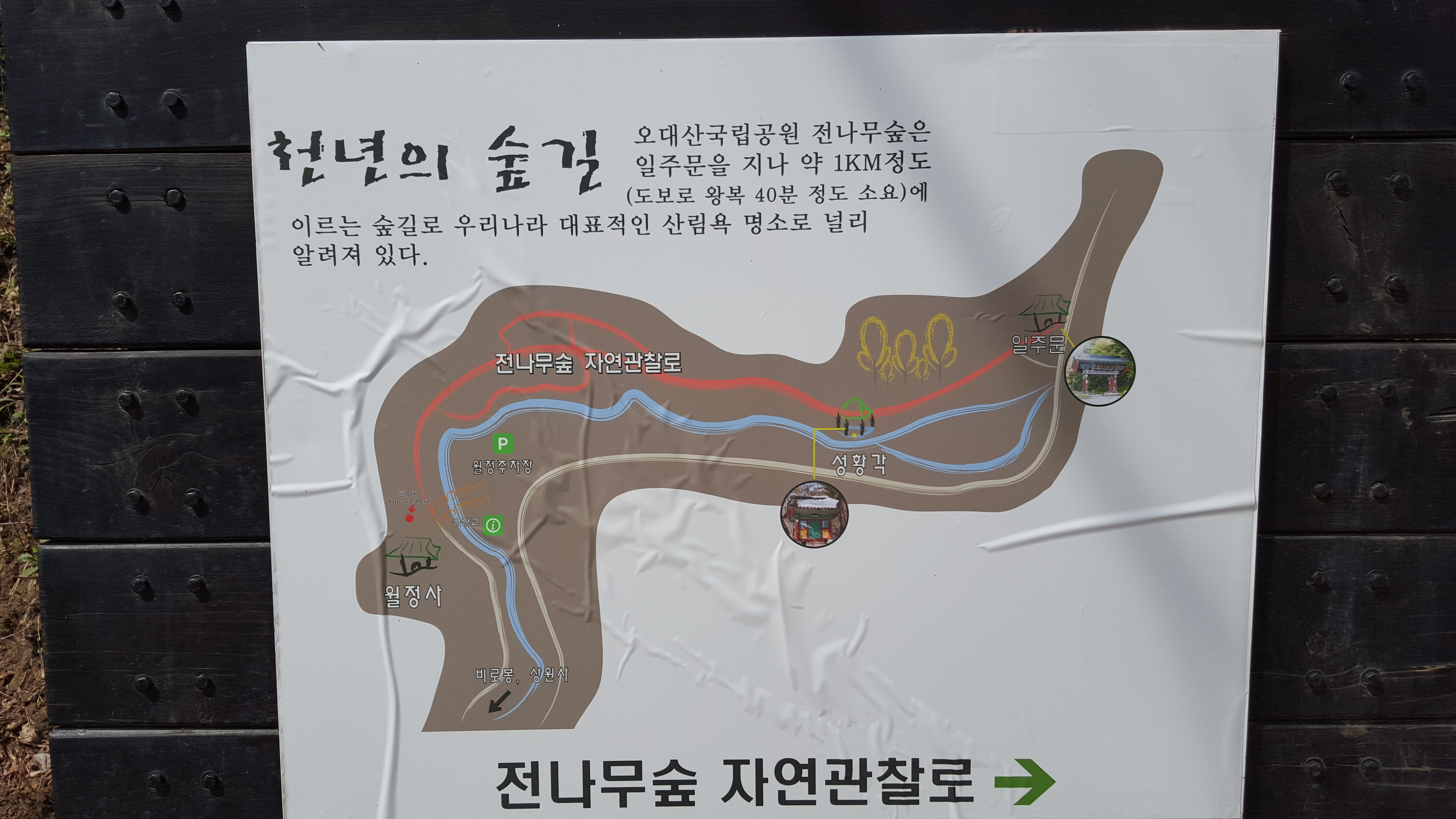 이 길을 '천년의 숲길'이라 이름지어 부르는데 조선 7대왕 세조가 등창치료를 위해 상원사를 방문한 것이 그 이유인 것 같다.