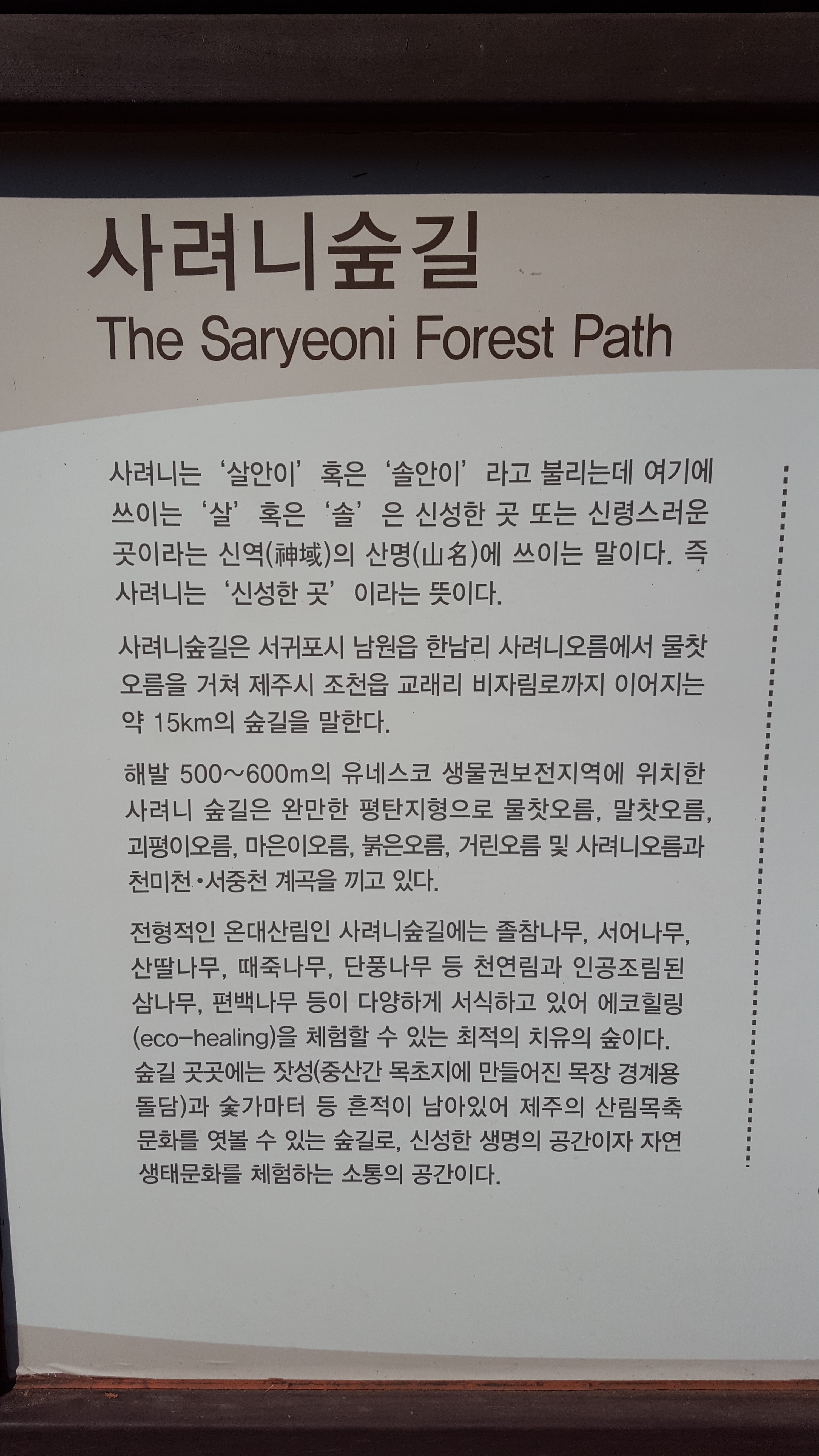 사려니숲의 사려니는 '신성한 장소'라는 의미가 있다고 한다.